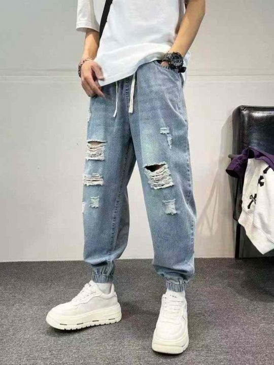 秋季新品男女同款洗水棉松紧腰束脚牛仔裤,独立包装,码数S--2xL码,295件...