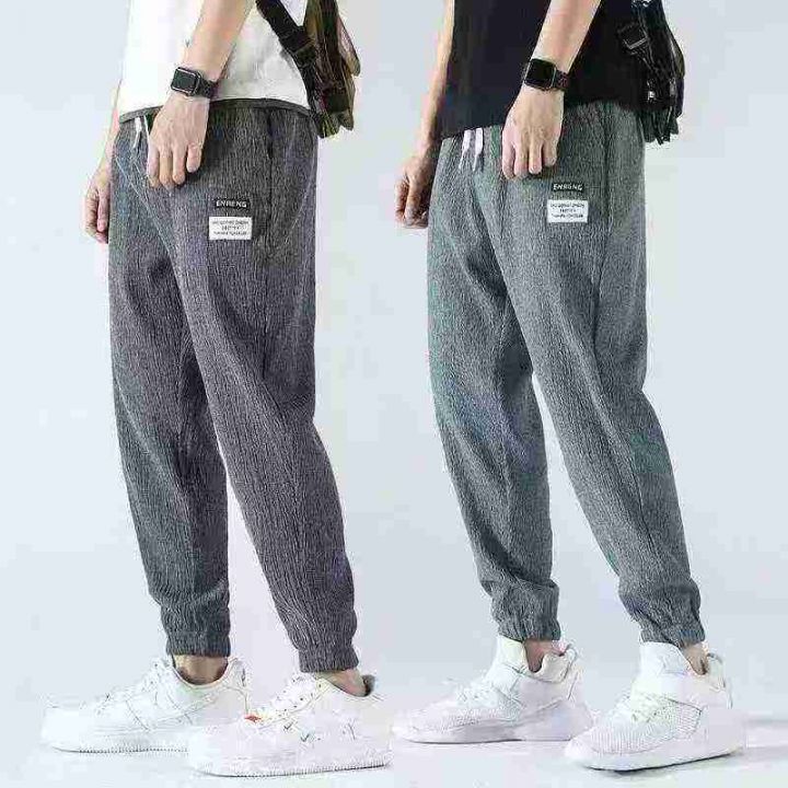 裤子男夏季薄款冰丝韩版潮流修身束脚运动裤裤,整款3色,独立包装,货品干...