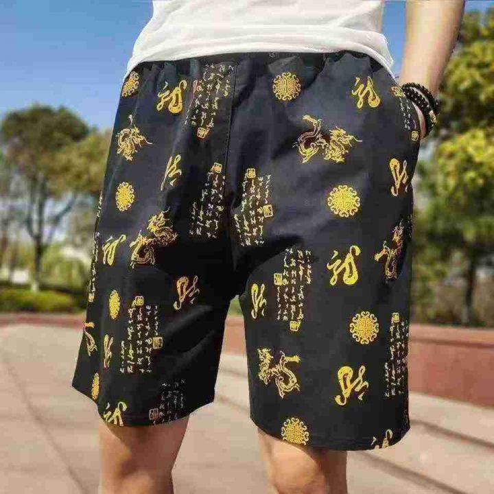 男中国风花外穿宽松夏季潮流纯棉5分中裤,花型多,均码独立包装,1200件左...
