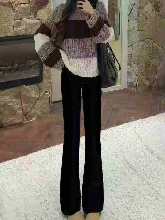 加绒西裤微喇叭裤子女冬高腰大码宽松休闲长裤,独立包装,S -2 XL码,680...