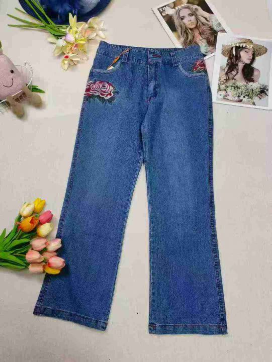 男女同款小雏菊刺绣牛仔裤子直筒阔腿萝卜宽松休闲高腰显瘦百搭牛仔裤1400件...