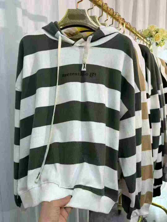 清货价8.9,数量600件左右系列款大版型纯棉条纹卫衣,有连帽和圆领,统一面...