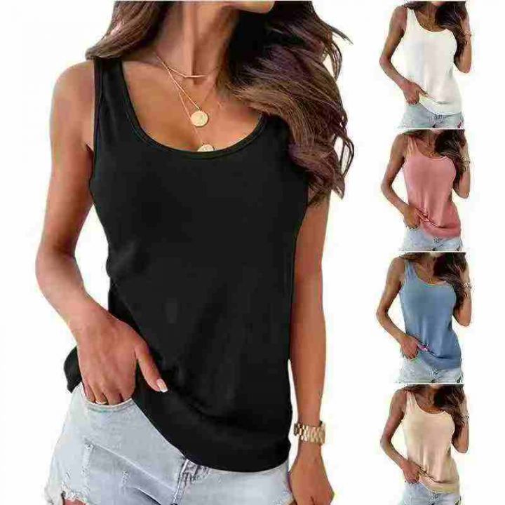 1.7清电商仓回收630件亚马逊爆款跨境冰丝纯色宽松大码V领无袖休闲背心T恤,...