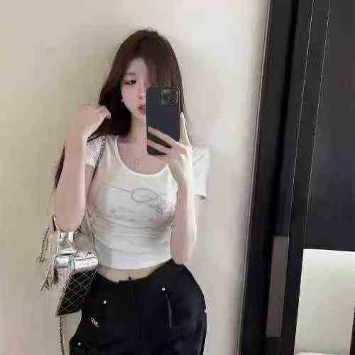 [月亮]:7.5清110件(不分货)[月亮]:猫咪烫钻洋气短款气质辣妹短袖T恤[月...