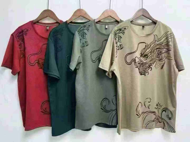 品牌竹节高弹肌理!轻华夫格印花夏季男士轻商务时尚圆领高弹短袖T恤2000件...