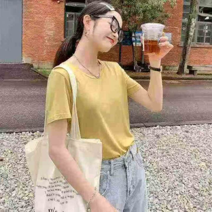 全清5.9时尚圆领短袖面膜t恤女纯色修身V领打底衫莫代尔棉面料内搭上衣,独...