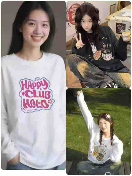 5.9清天猫仓回收1383件早秋重磅纯棉200克长袖字母印花T恤上衣,码数S-2XL。...