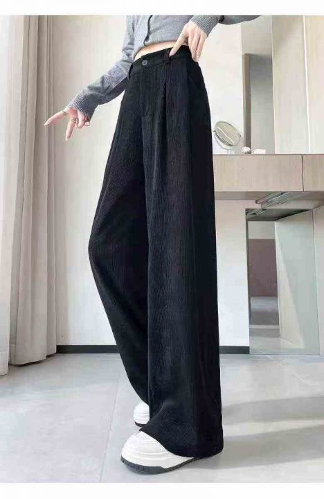 ☆840款,没计感2025新款灯芯绒高级感高腰显瘦阔腿女西装裤,262件其中加绒...