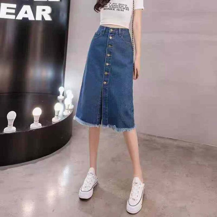 牛仔裙女半身a字长裙子中长款夏季薄款开衩高腰显瘦(有部分扣子拉链轻微生...