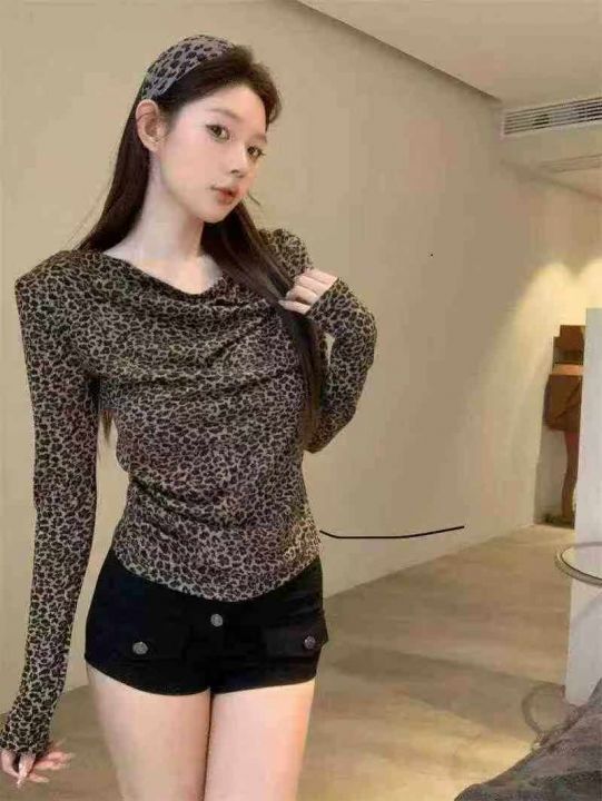上新全清:5.8一件复古豹纹荡领设计感修身长袖上衣,[爱心]70件左右,款号#...