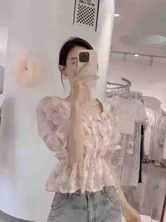 上新全清:12.8一件甜美温柔小清新方领泡泡袖上衣,[爱心]40件左右,款号#7...