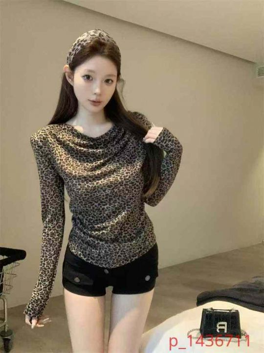 上新全清:5.8一件复古豹纹荡领设计感修身长袖上衣,[爱心]70件左右,款号#...