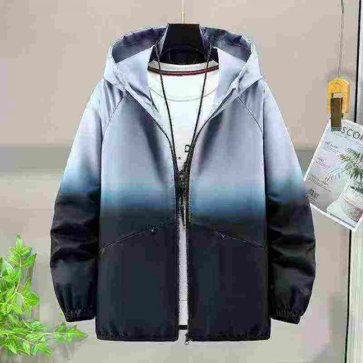 时尚渐变色外套男士透气薄款春秋季夹克衫学生连帽宽松休闲青年潮,码数S-5X...