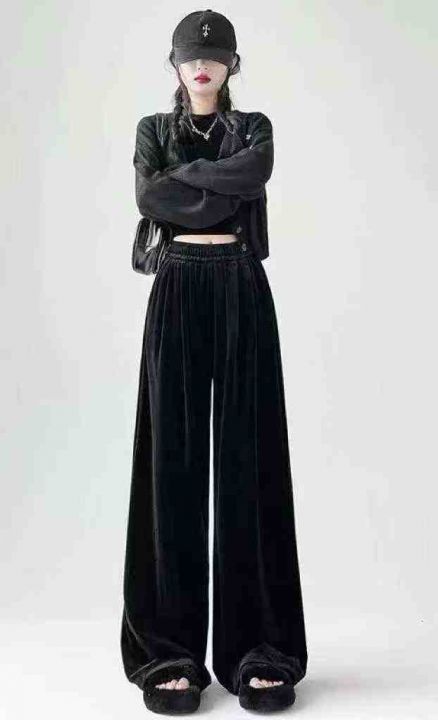 全清价7.9元金丝绒秋冬新款垂坠感高腰显瘦百搭宽松高腰休闲开叉阔腿裤,独...