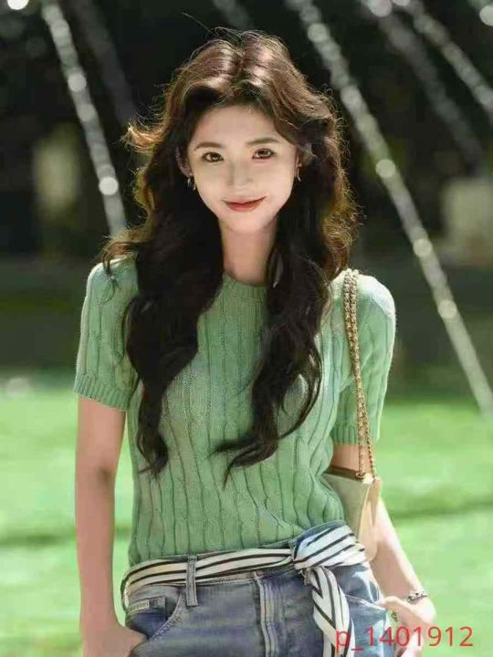 夏季新款韩版复古麻花冰丝圆领短袖针织T恤,独立包装,均码面料柔软舒适透...