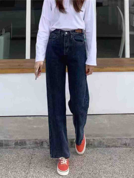 秋季新品大码女装复古高腰直筒阔腿宽松深色牛仔长裤,独立包装带吊牌,码数...