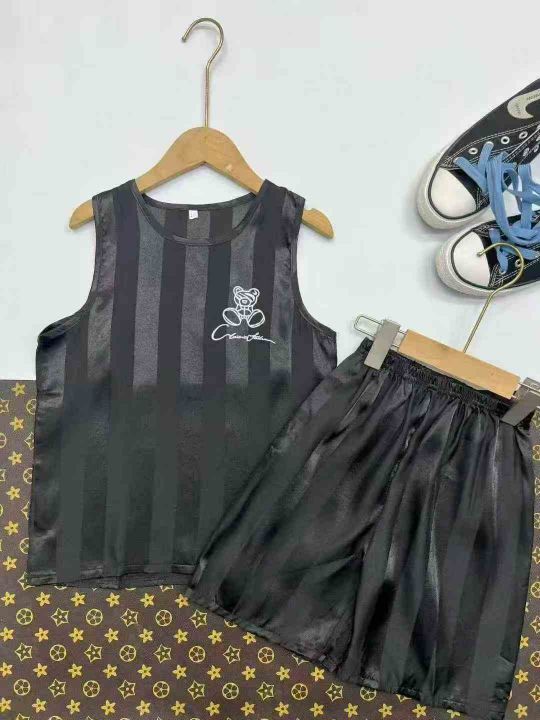 4.9元清童装家居服套装,仿真丝面料,面料柔软透气凉爽,数量1765套,黑白...