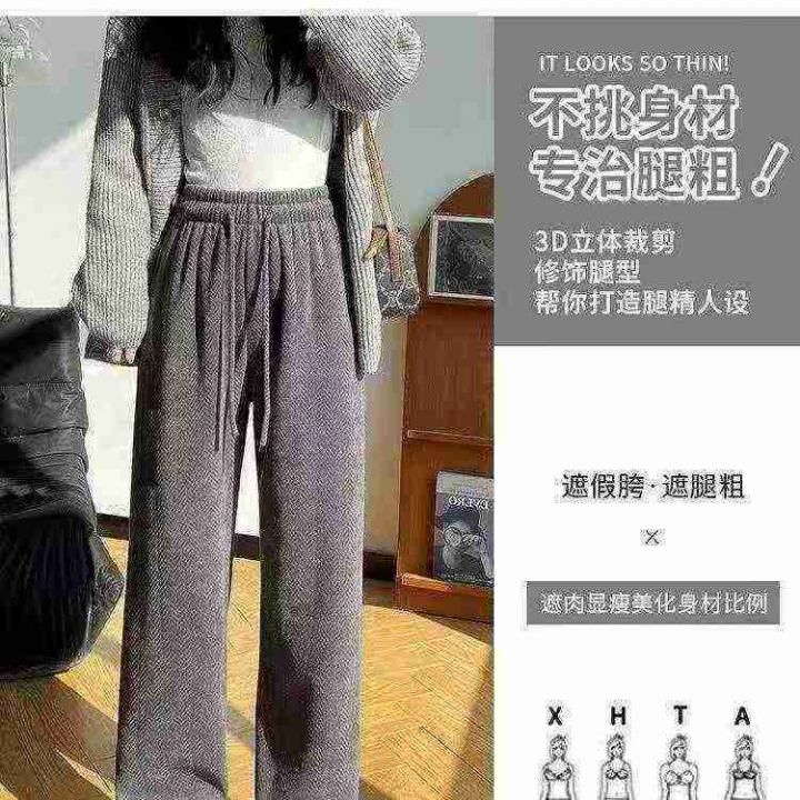 清11.8分货➕1雪尼尔人字纹阔腿裤女秋冬季休闲直筒高腰加绒长裤,数量260件...