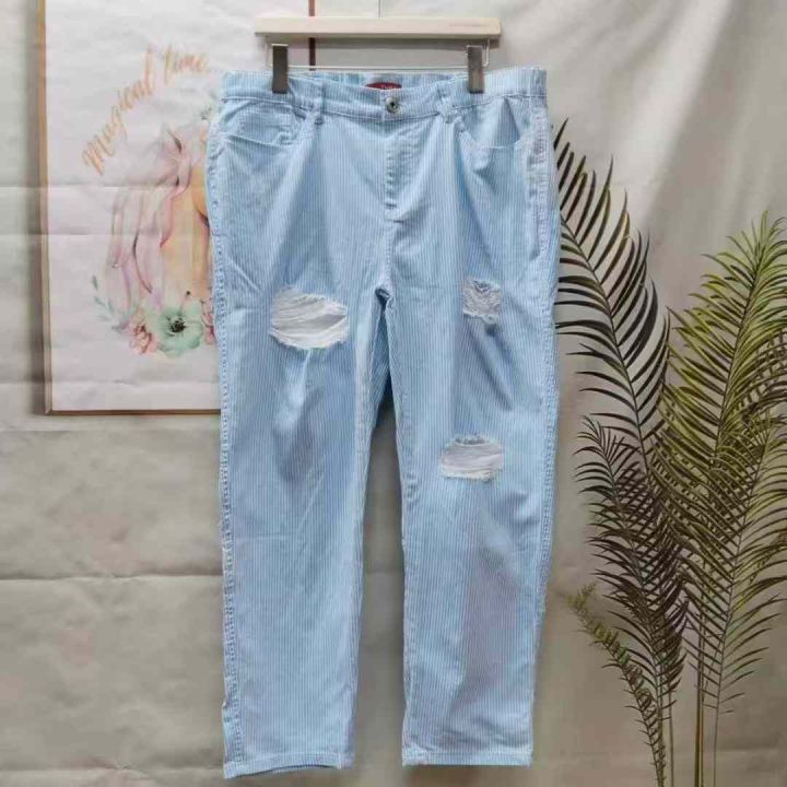 3.5元秒杀[勾引][勾引] 加肥加大男女同款宽松哈伦破洞弹力老爹裤子,版型...