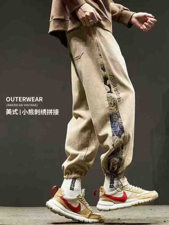 全清10.9工装裤子男日系潮牌高街小熊刺绣设计感休闲裤直筒抽绳束脚裤春秋,...