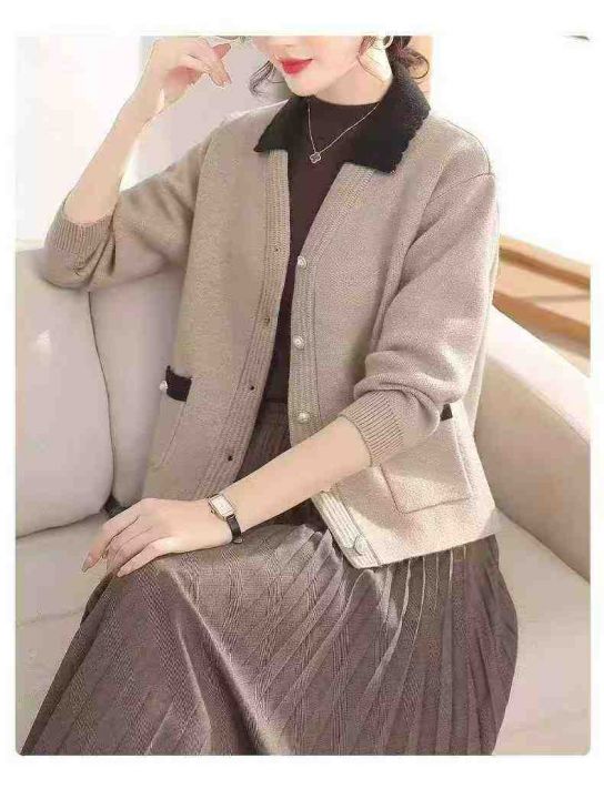 早秋新款小香风撞色翻领温柔风减龄百搭宽松显瘦毛衣开衫,独立包装,均码宽...