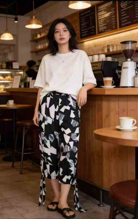 130条几何撞色休闲裤,松紧腰+裤脚抽绳设计 ,单款单色,均码 80-130斤 ,...