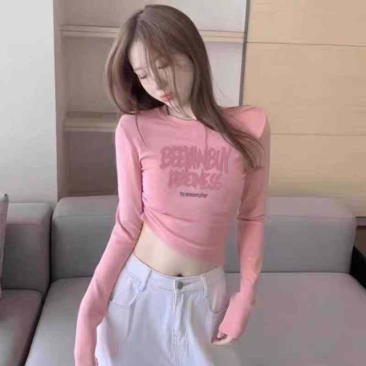 ☕️辣妹长袖女装春秋洋气减龄长袖t恤高级感修身内搭打底衫2200件全清8.8元...