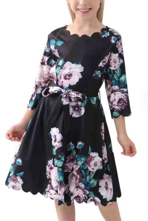 全清7.9女童植物印花连衣裙欧美跨境新款儿童连衣裙,欧码4Y-14Y码(120-150...