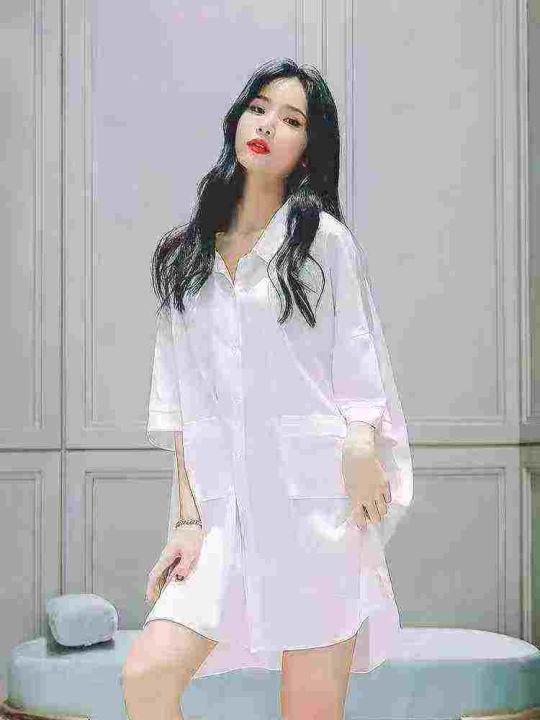 [月亮]:7.8清392件[月亮]:时尚春夏中长款垂顺家居衬衣睡裙[月亮]:M-XXL...