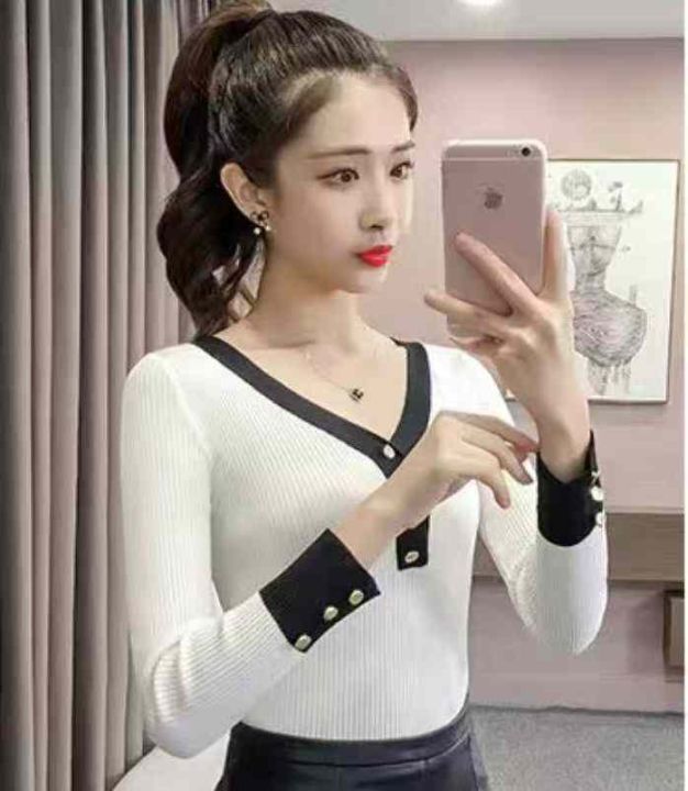 早秋小香风修身显瘦软糯洋气V领长袖针织衫,独立包装,面料软糯舒适弹力大...