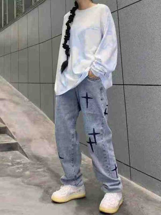 秋季新款男女同款韩版洗水棉网红设计款直筒牛仔阔腿裤,独立包装带吊牌,码...
