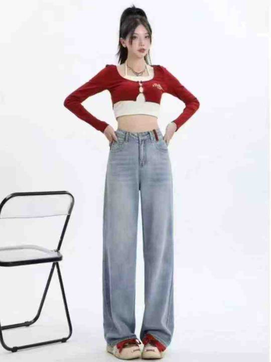 春夏新款高品质高腰显瘦重工刺绣工艺复古宽松阔腿直筒牛仔裤,独立包装带吊...
