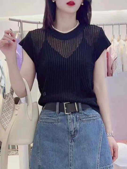 夏季新款净版简约镂空针织短袖T桖,独立包装,均码面料柔软舒适,140件,全...