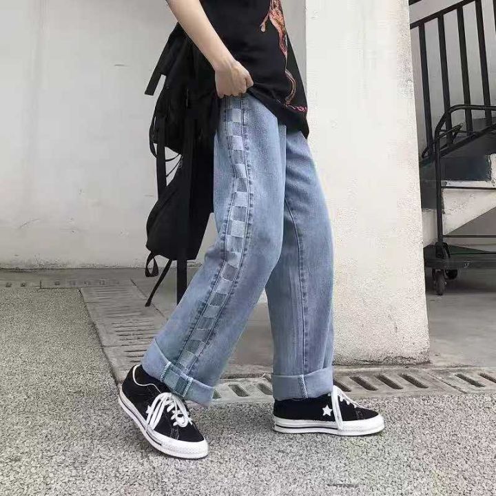 6.8清天猫仓回收230件高街格子拼接男女同款牛仔裤,码数S.m.4xl.5xl。高品...
