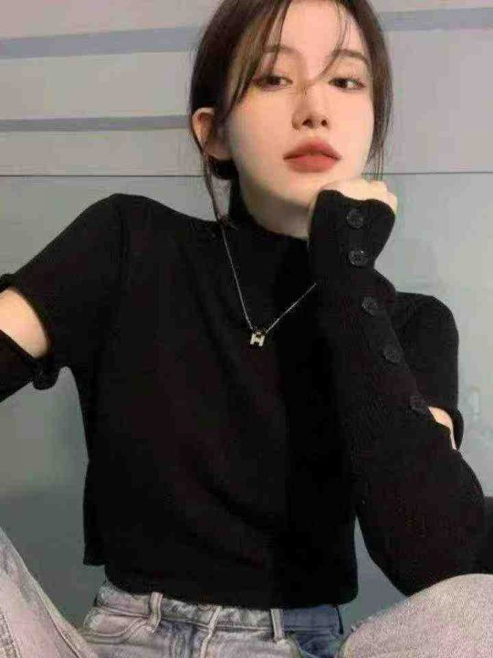 秋季新款辣妹纯色内搭设计感可拆卸半高领针织套头毛衣,独立包装均码面料软...