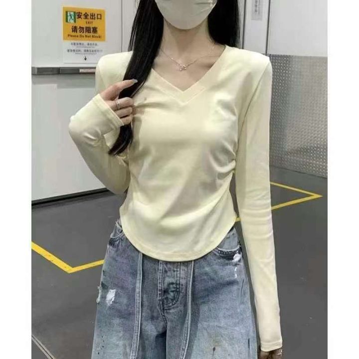 新款\"柔柔T\"莱赛尔羊毛混纺V领褶皱针织衫,面料柔软舒适,高弹...