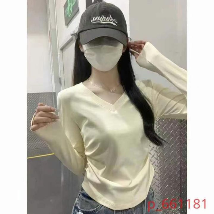 新款\"柔柔T\"莱赛尔羊毛混纺V领褶皱针织衫,面料柔软舒适,高弹...