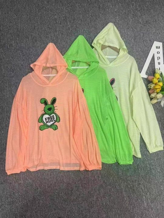 全清4.9,分货加11200件夏季新款宽松显瘦条纹长袖T恤薄款连帽圆领防晒衫女...