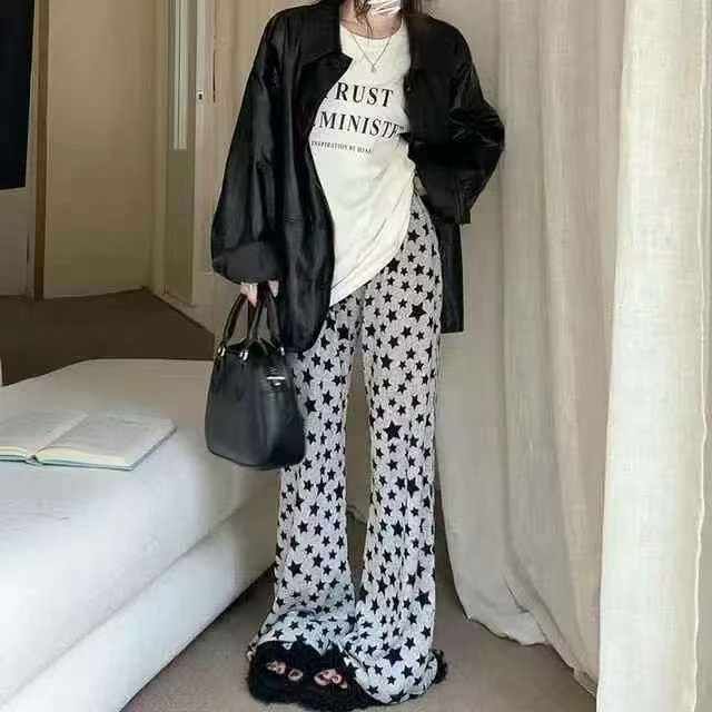 时尚潮流休闲豹纹星星条纹直筒裤,图片款,品质好,数量150件左右,码数s-x...