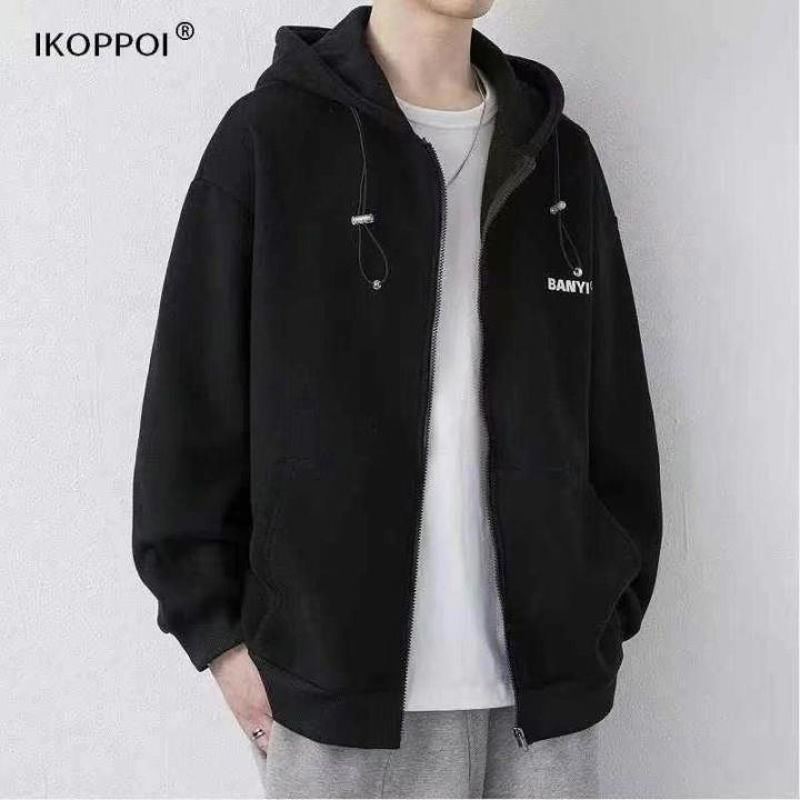全清18.8,开衫连帽加绒卫衣男秋季冬新款宽松重磅上衣发泡拉链男...