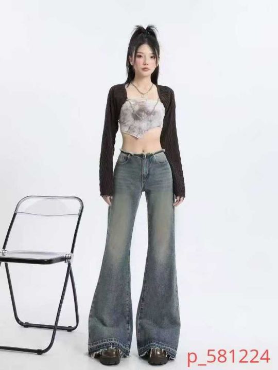 夏季新款美式辣妹复古微喇叭毛边阔腿牛仔裤,独立包装带吊牌,码数M--XL码...