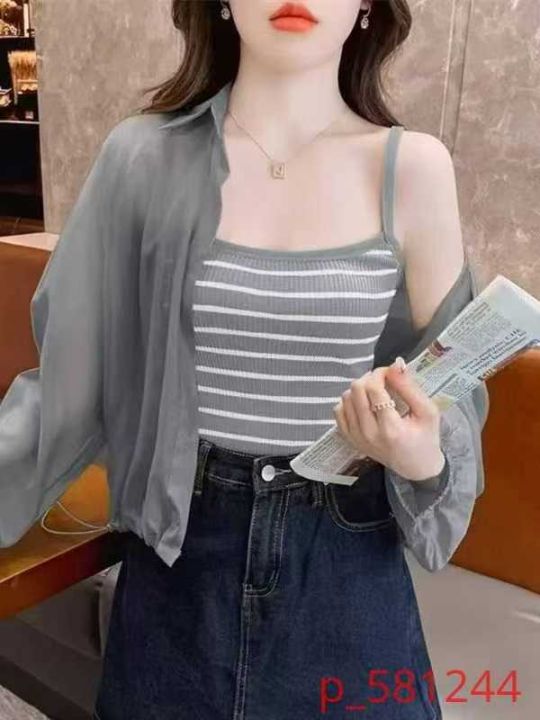 夏季新款法式甜辣别致撞色条纹针织吊带背心,独立包装,均码面料柔软舒适弹...