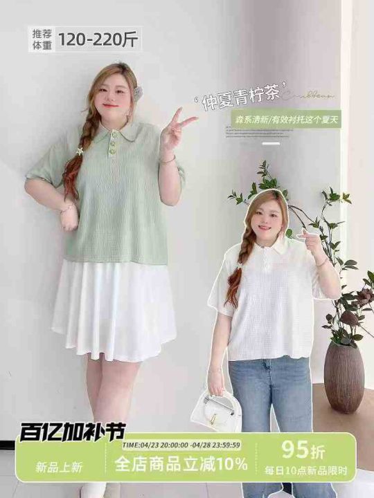 清新少女大码宽松休闲POLO领提花显瘦遮肉学院风减龄短袖T恤·单款三个色三...