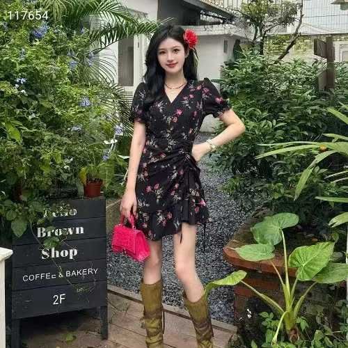 100件左右大码女装茶歇法式连衣裙夏季别致绝美碎花裙胖mm遮肚显瘦开叉裙子...