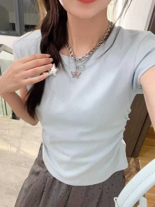 冰丝螺纹显瘦抽皱小蛮腰不规则短袖,侧边有抽皱设计,只有大几百件没抽皱,...