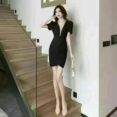 法式赫本风高级感小黑裙V领修身显瘦包臀裙2025夏季新款连衣裙全清价6.9,数...
