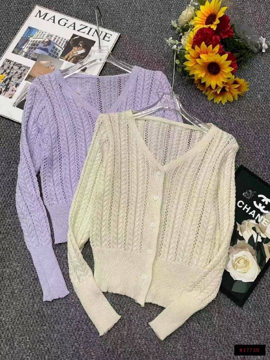 春秋新款设计感镂空钩花短款宽松针织毛衣开衫,独立包装,均码面料软糯舒适...