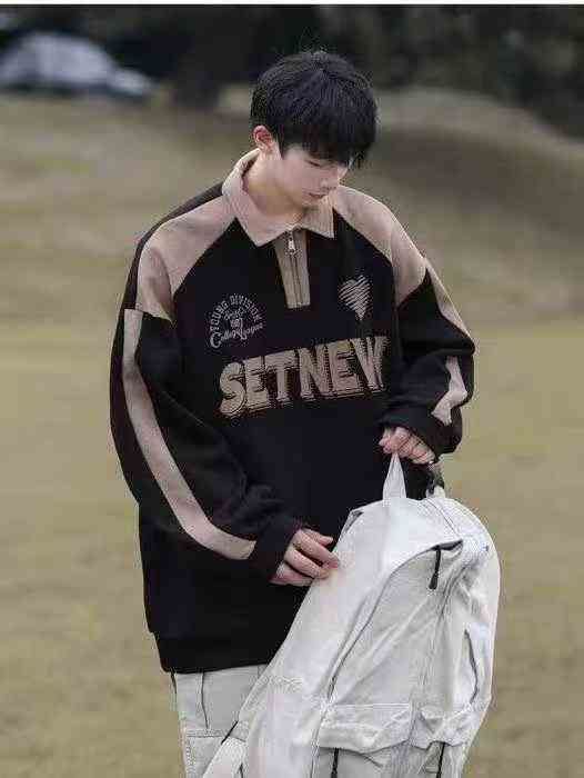 polo半拉链复古潮牌青少年宽松拼接翻领男士卫衣外套·单款两个色m-3XL独立...