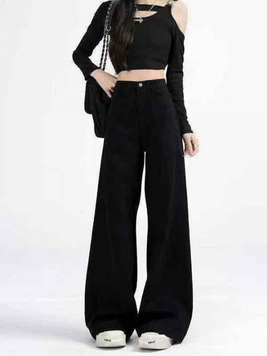 黑色阔腿牛仔裤女夏季新款高腰垂感宽松显瘦直筒拖地裤515条全清12.8元,码...