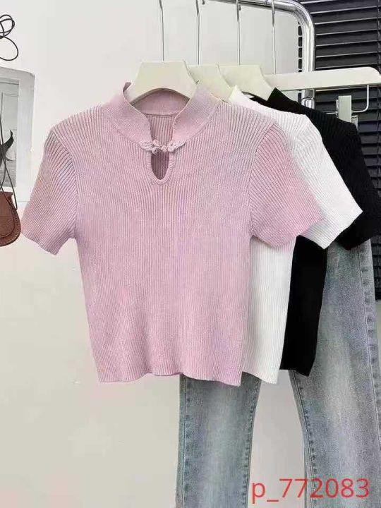 夏季新款新中式国风立领盘扣短袖针织衫,独立包装,均码面料软糯舒适弹力大...